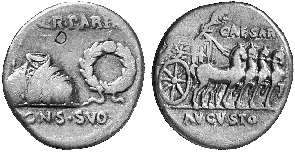 Issued by the Imperial legate P.Carisius, ca.25-23 BC | |||
