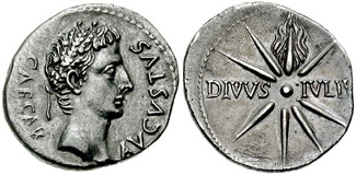 AUGUSTUS. 27 BC-14 AD. AR Denarius (20mm, 3.69 gm). Uncertain Spanish mint I (Caesaraugusta?). Struck 19-18 BC. CAESAR AVGVSTVS, laureate head left / DIVVS IVLIVS, eight-rayed comet with tail upwards. RIC I 38b; BMCRE 326; RSC 97. (Image courtesy CNG) | R |