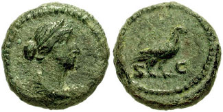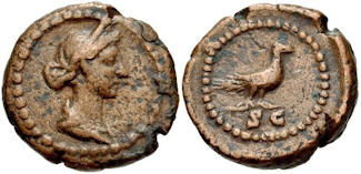 ANONYMOUS. Time of Domitian to Antoninus Pius. Circa 81-161 AD. Æ Quadrans (15mm, 2.58 gm). Diademed and draped bust of Venus right / Dove standing right, SC in exergue. cf. RIC II 24 (S-C in fields); cf. Cohen 10 (same). (Image courtesy CNG) | |