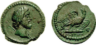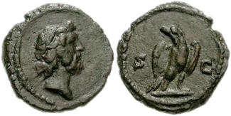 ANONYMOUS ISSUES. Period of Domitian to Antoninus Pius. Æ Quadrans (13mm, 2.60 g). Diademed head of Jupiter right / S-C, Eagle standing right on thunderbolt, head turned left. RIC II p. 216, 3; Cohen 17. (Image courtesy CNG) | |