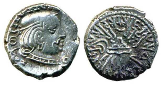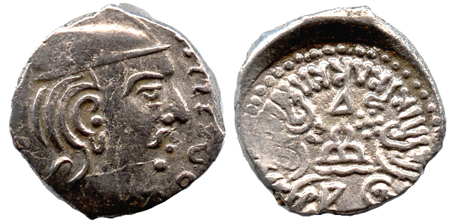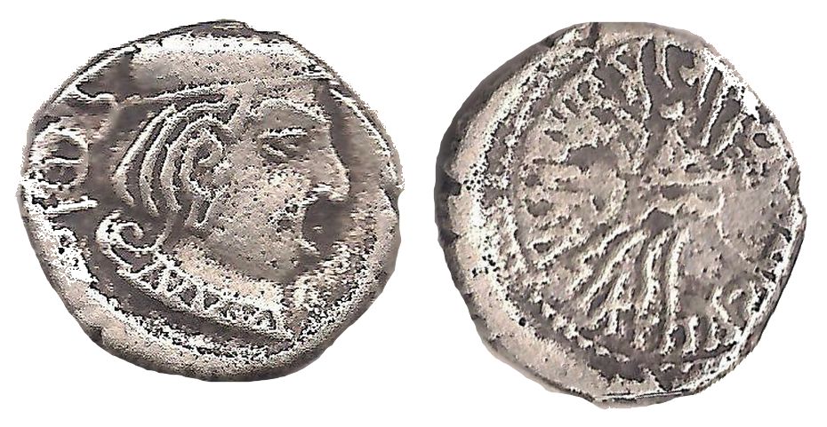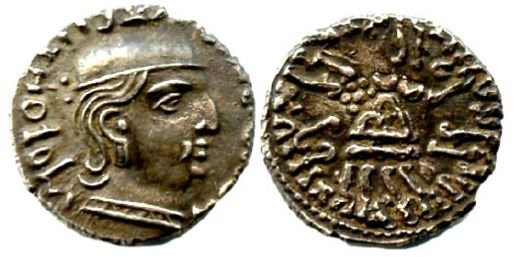 Authentic coin of Bhartrdaman. Original coin is "The Silver Coinage of the Western Satraps in India (50-400 AD), Catalogue and Price Guide" (A.M.Fishman) #29.3 |