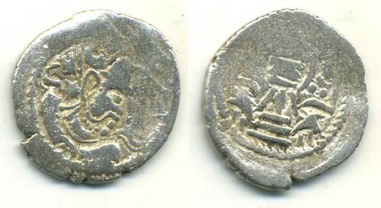 In 1990's small hoard of small silver coins was unearthed in (reportedly) Northern Pakistan. The hoard was dispersed between a number of dealers, and I was lucky enough to get the bulk (reportedly) of the hoard. These fascinating little silver coins were originally sold as "Hephthalite" coins, as per attribution of the Pakistani dealers, but they are completely unpublished in any catalogue and were completely unknown until this find.
